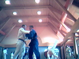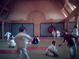 | So sieht das DOJO aus und wie man sieht, wird ordentlich trainiert! Auch die älteren trainieren fleißig - oder tun zumindestens so! | Werden hier " zarte Bande" geknüpft? | |