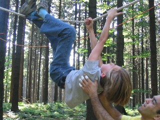 | Mayr und Sebie, in ihrem Element! | Hey Stefan, toller Rückwärtssalto! | Amjad nützt jede Gelegenheit um sein "Six-Pack" zu stählen! |