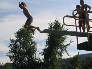 | Baden macht hungrig. | Der Sprungturm, immer wieder ... | ||