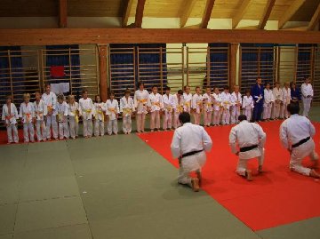 | Was kommt als Erstes? Ja natürlich, die zeremonielle Begrüßung vor dem Judotraining! |