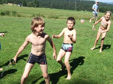 | Endlich ein sommerliches Vergnügen - allerlei Aktivitäten mit Wasser: Wasserbombenschlacht, Wasserrutsche und was sonst noch mit Wasser zu tun hat! Ohne Kommentare - die Fotos sprechen für sich! :-))