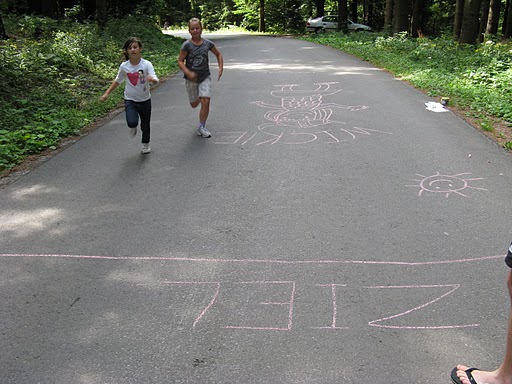 | Dominik und Lukas üben schon für den Abflug nach Japan | Auch natürliche Gewässer... | ...gibts hier... |