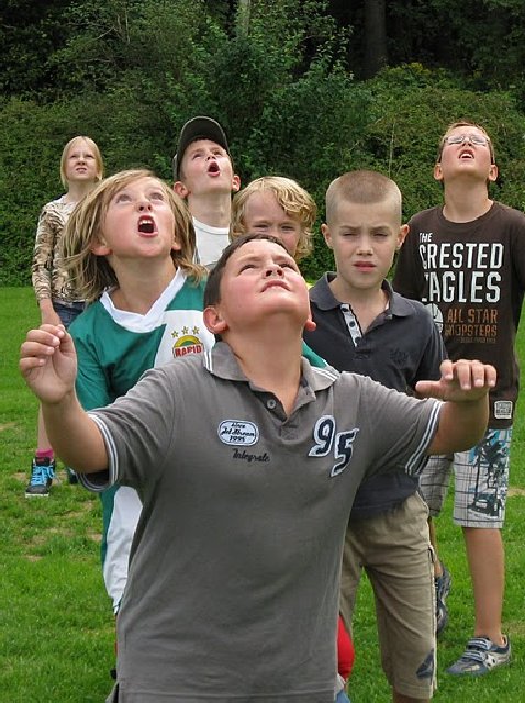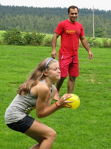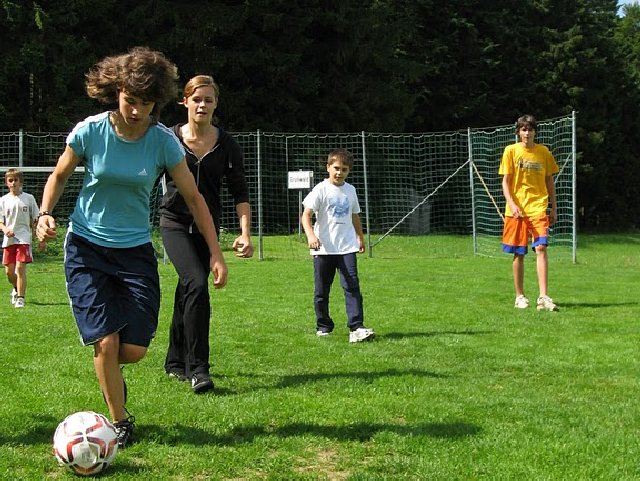 | Bevor es mit Fußball losgeht, werden nochmals die Regeln besprochen! | Auf geht's, alles hört auf mein Kommando! | Wer erwischt den Kopfball? |