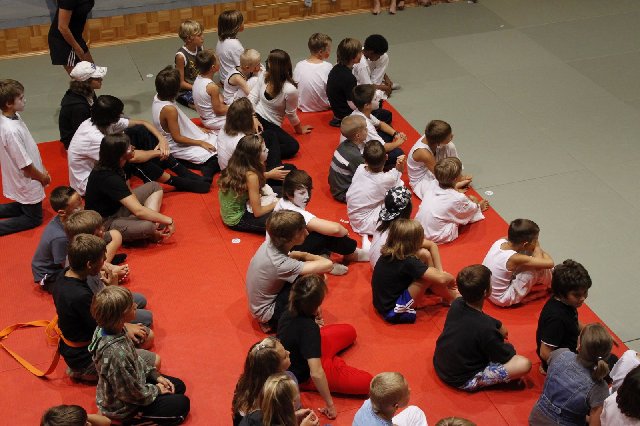 Während die jüngeren einen Ausflug in die "Bildenden Künste" machten, durften die älteren nach einem anstrengenden Badetag ihr Können auf der Matte unter Beweis stellen |