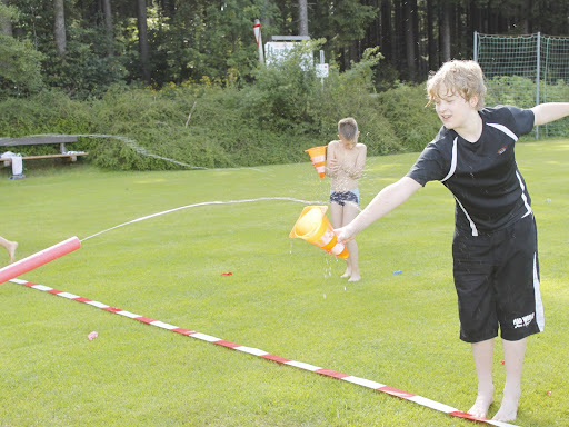 | Am Vormittag diverse Wasserspiele und Sackhüpfen und ....... was sich die Trainer halt so einfallen lassen! |