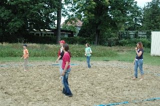 jetzt ist genug gefaulenzt, auf zum Beach-Volleyball mit Schiedsrichterin Kerstin! |