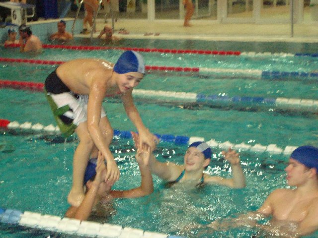 - von der Badehaubenpflicht waren die Sportler allerdings weniger begeistert.